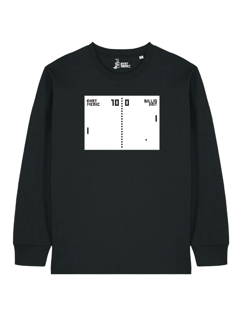 For de av oss som har spilt dataspill fra tidenes morgen, og syns at dette er den feteste formen for tennis. På trykket spiller Dyrt Merke vs. Billig Drit, hvor Dyrt Merke ledet 10-0 da skjermbilde ble tatt. Oversized passform med senkede skuldersømmer, mot høye skuldre. Tørt, stabilt og tungt bomullmateriale som holder bra struktur og skjuler eventuelle kroppslige skavanker. Velg din vanlige størrelse for oversized look