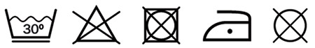 Vask på vranga på 30 grader, med lignende farger. Ikke bruk strykejern på trykket.